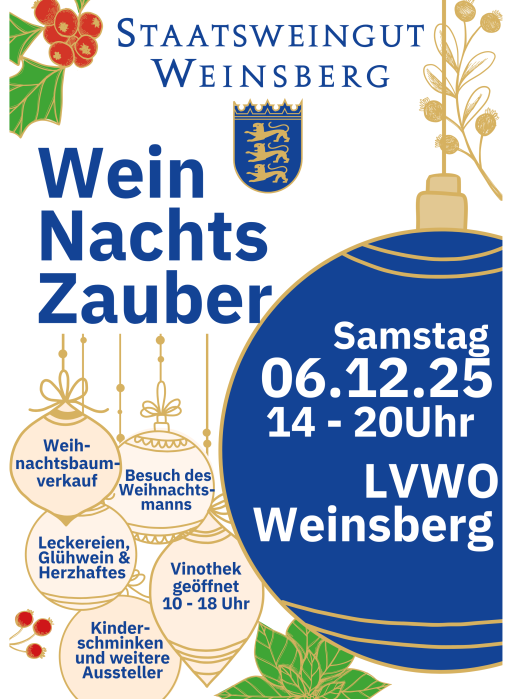 Am 06. Dezember findet unser WEINnachts-Zauber Fest im Innenhof der LVWO/Staatsweingut Weinsberg statt.